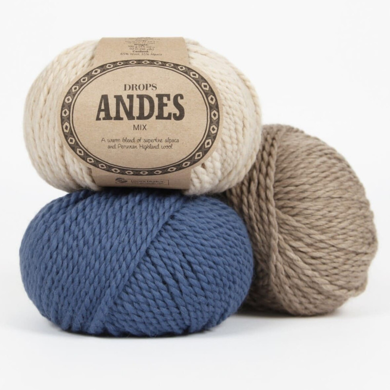 DROPS Andes to naturalna, gruba włóczka stworzona z połączenia 65% wełny i 35% superfine alpaki. Przędziona z dwóch nitek, łączy w sobie to, co najlepsze z obu włókien – jedwabistą miękkość i delikatny połysk alpaki z elastycznością i zdolnością utrzymywania formy, jaką daje wełna.
